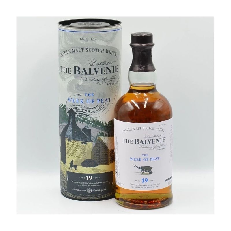 The Balvenie 19 Year Old “Week of Peat” is a Speyside single malt scotch whisky with a rich, earthy peat smoke character balanced by creamy vanilla, honey, and citrus notes, along with warming cinnamon and ginger spice