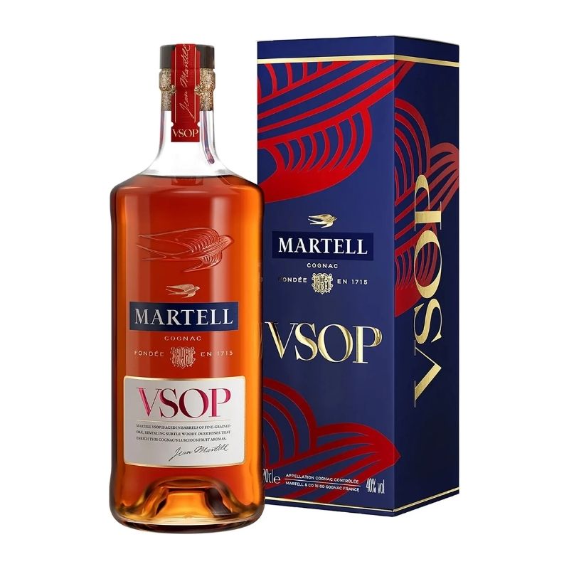 Martell VSOP Red Barrel is a copper-colored cognac with golden highlights, known for its elegant balance of ripe fruit aromas and refined wood and spice notes. On the nose, it features notes of mirabelle plum, greengage, apricot, and vineyard peach, while the palate delivers intense fruity flavors with hints of wood and soft spices. It is aged in old, fine-grained “red barrels” which impart a subtle spice and a velvety finish with notes of vanilla, mocha, and chocolate.Â